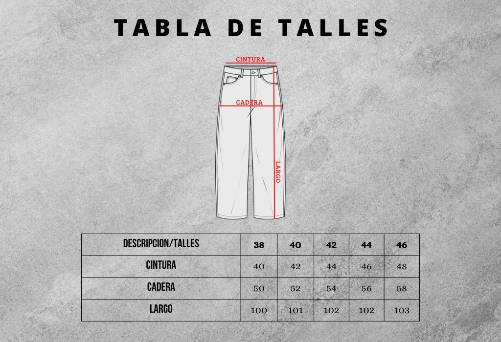Chequea nuestra tabla de medidas que esta a continuacion y comparala con algun jean que te quede bien. Te recomendamos que para tomar las medidas lo apoyes en una superficie plana.